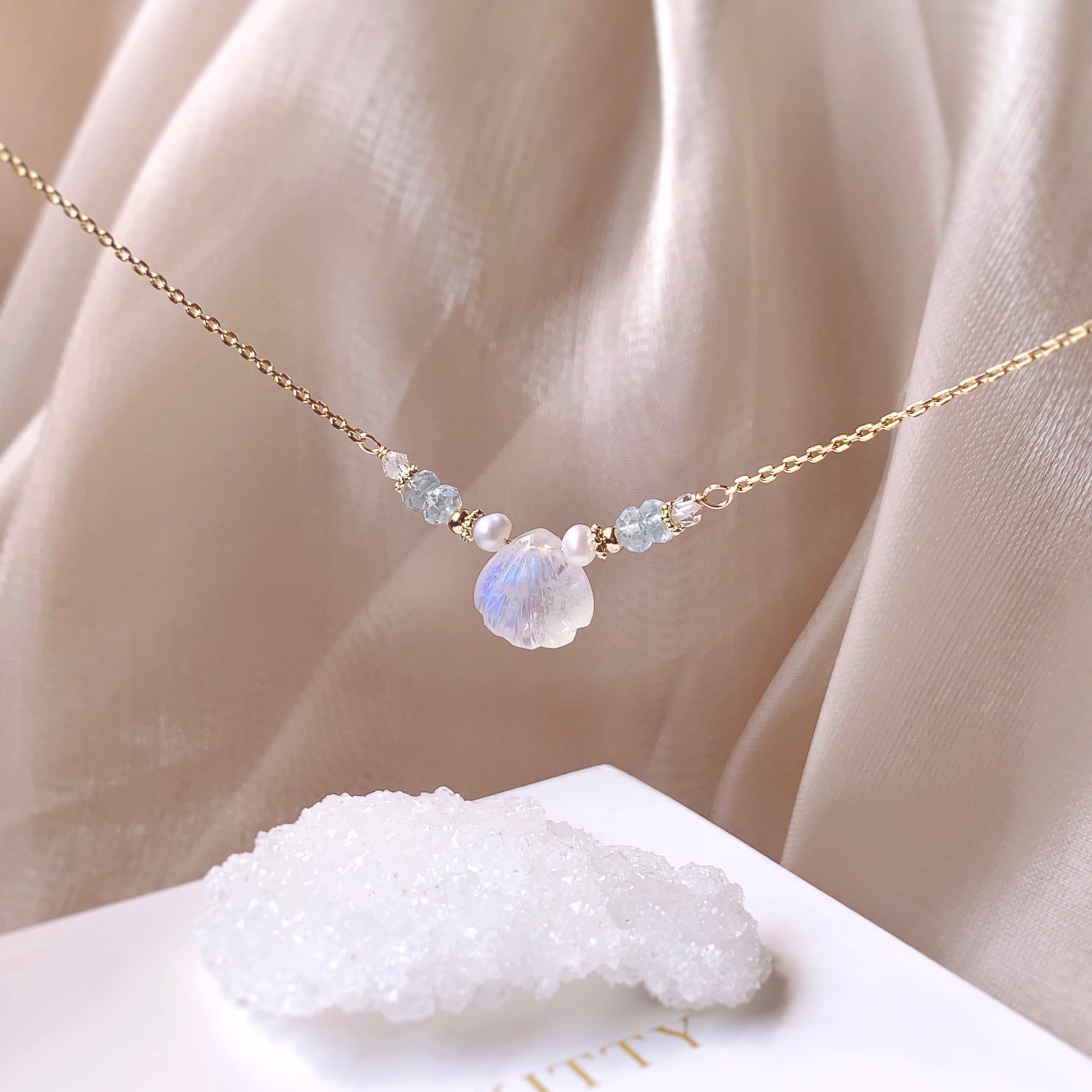 Moonstone. Aquamarine. Herkimer Diamond. Pearl.