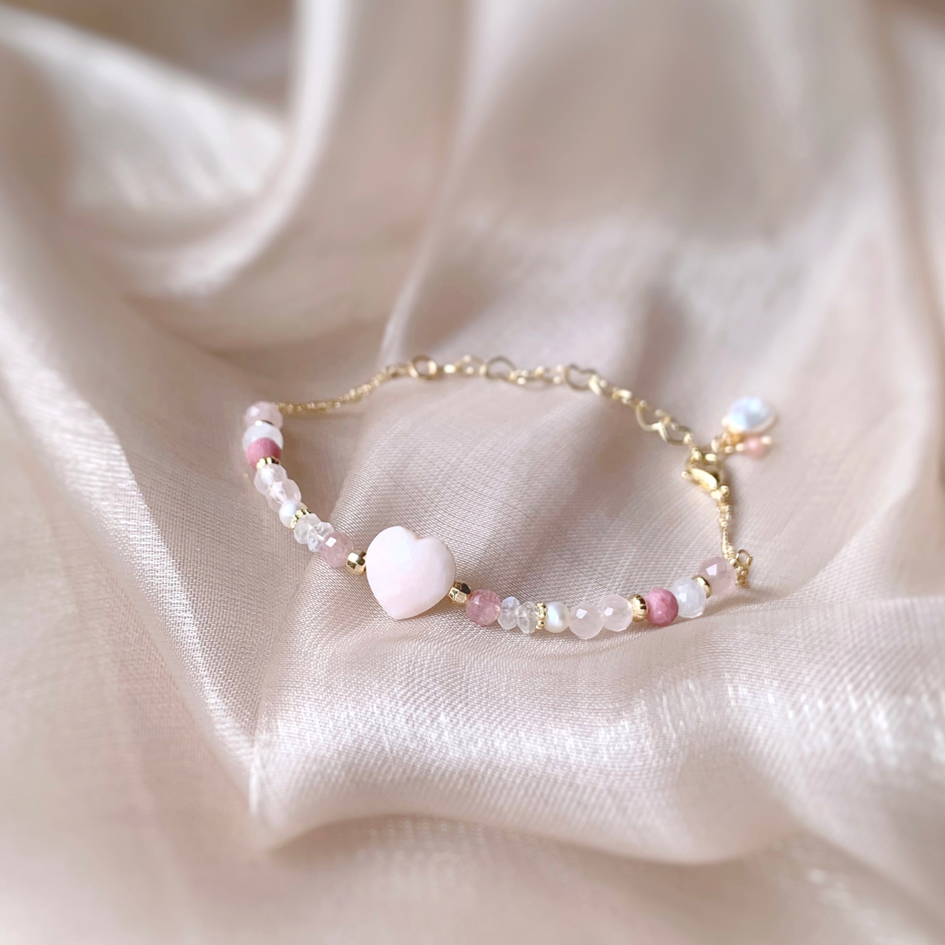 Pink Opal. Spinel. Moonstone. Rose Quartz. Rhodonite. Rhodochrosite. Pearl.