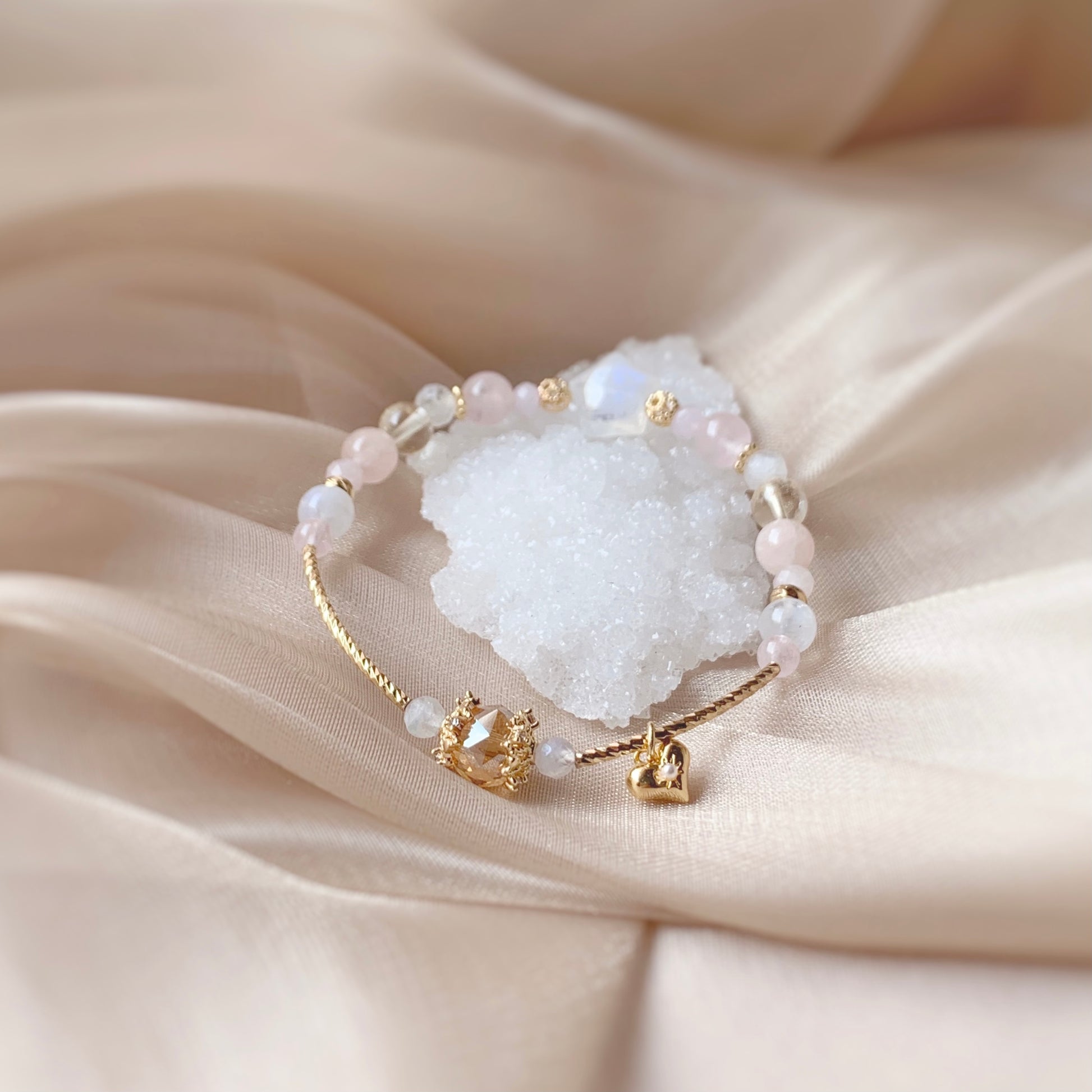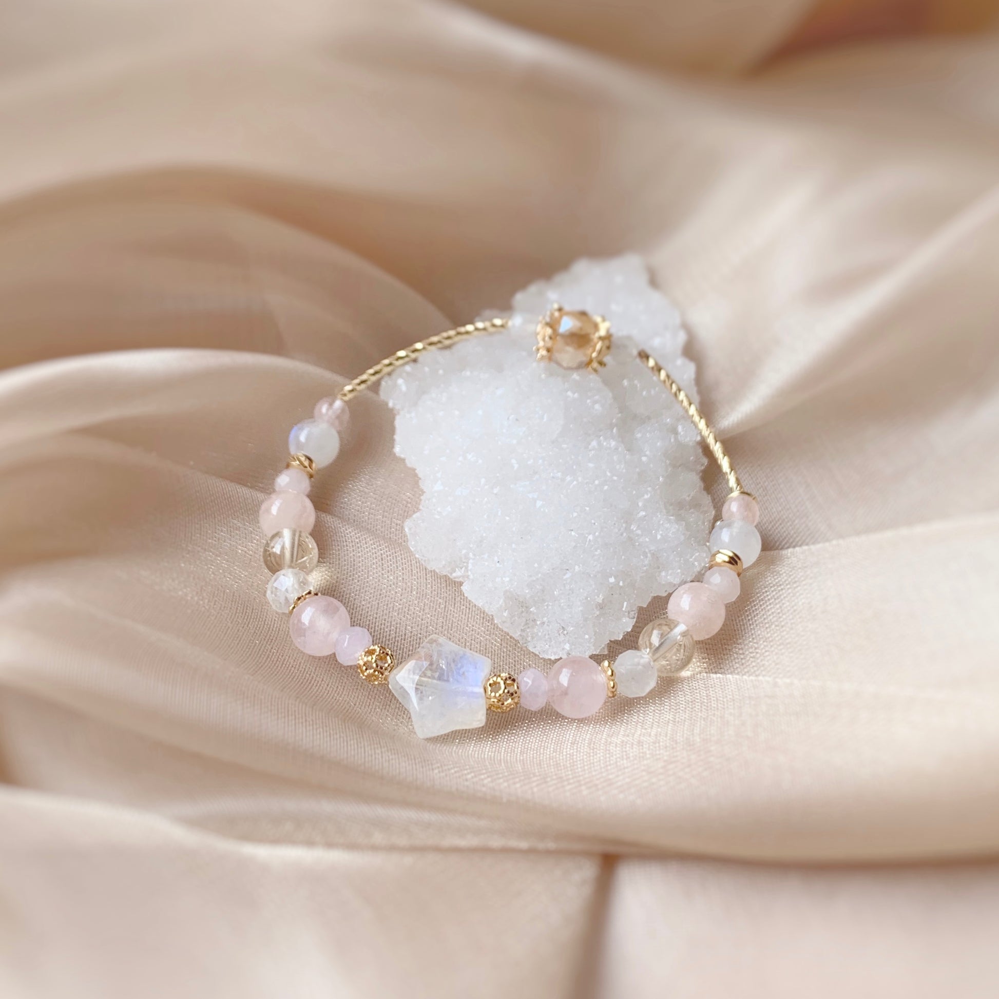 Do note that the center champagne bead is a glass crystal! There may be slight inclusions on the moonstone as well!