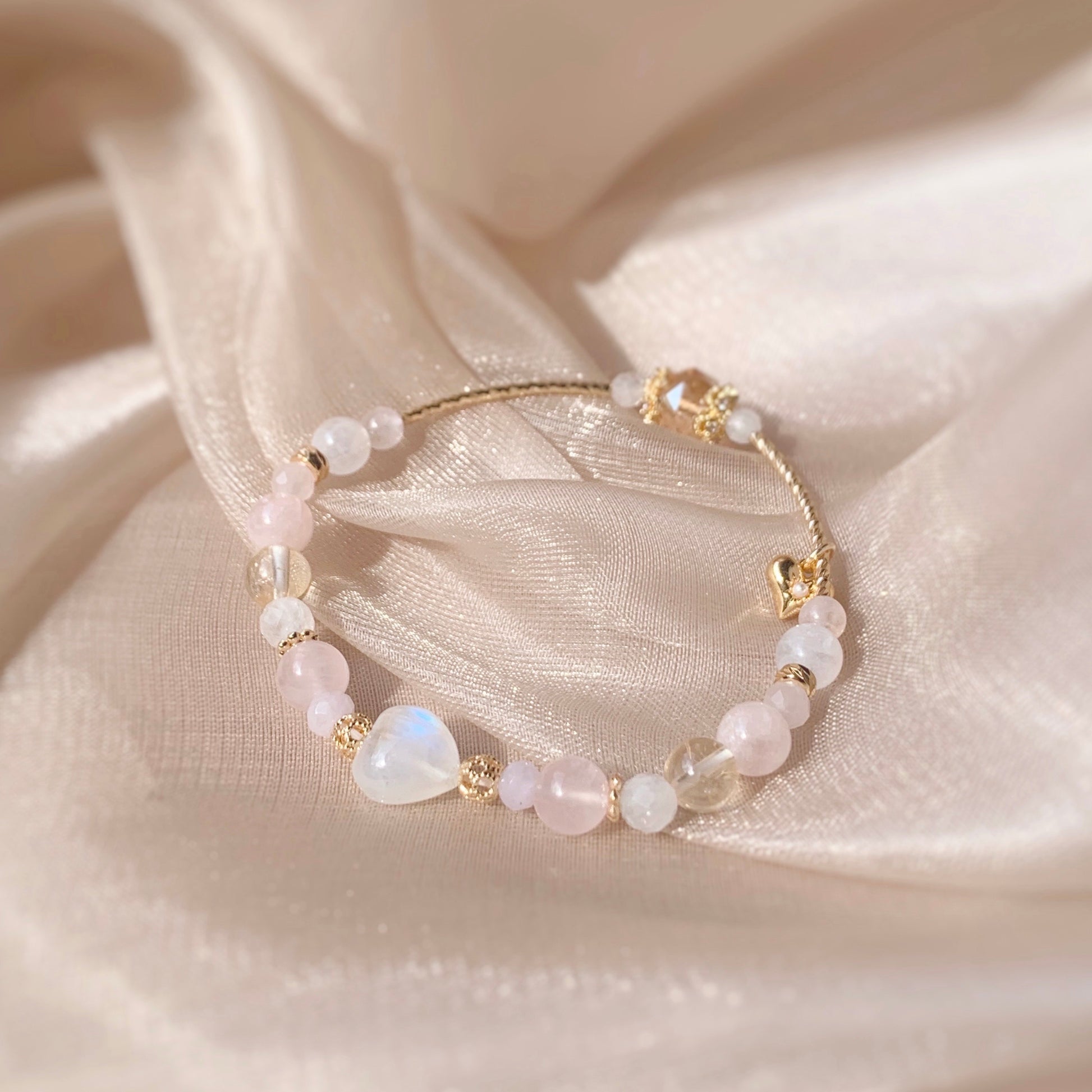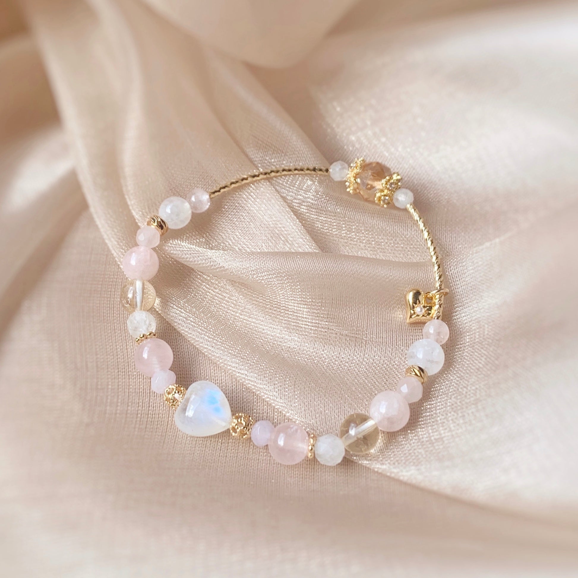 Moonstone. Purple Chalcedony. Rose Quartz. Citrine. Morganite.