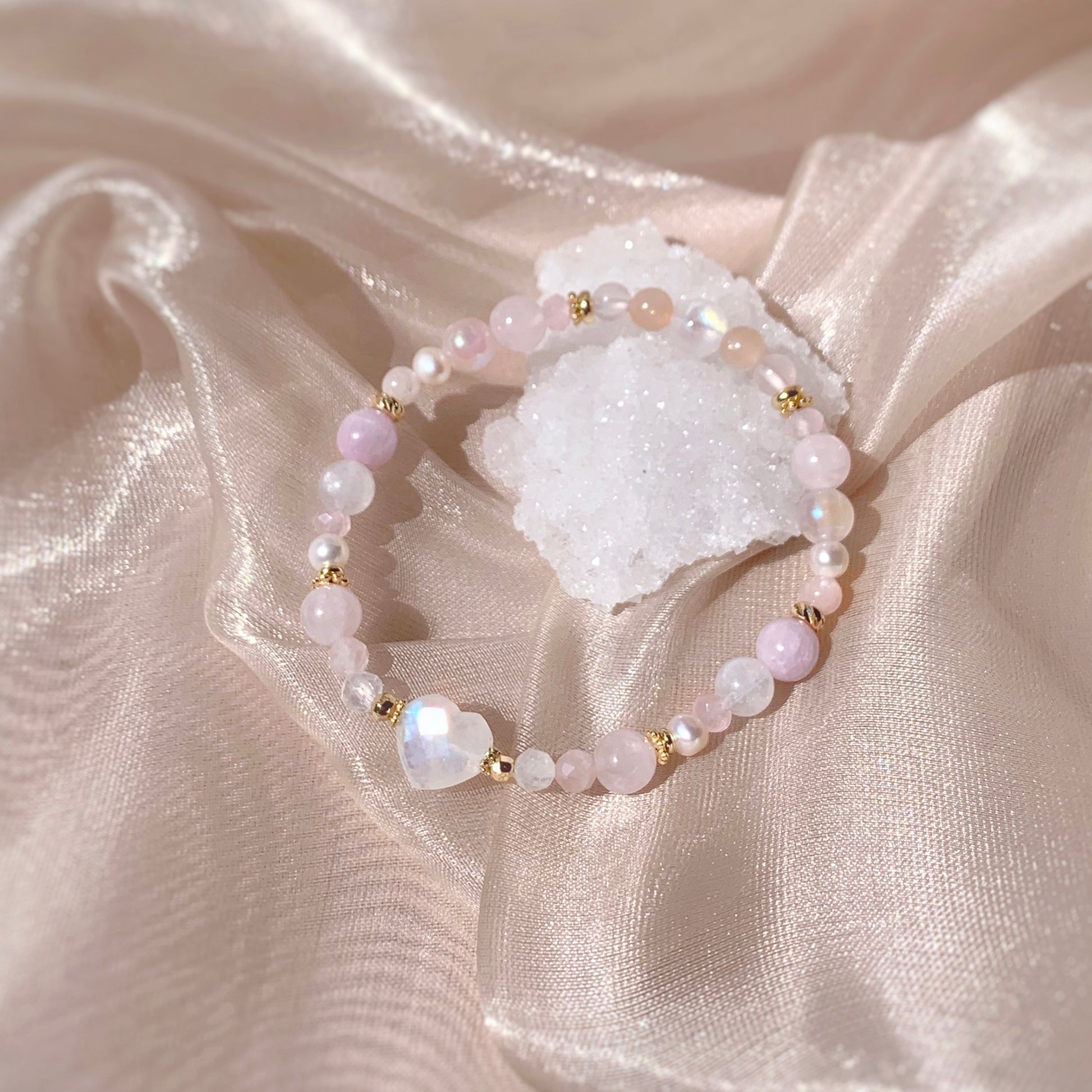 Moonstone. Rose Quartz. Pink Chalcedony. Kunzite. Rose Quartz Aura. Peach Moonstone.