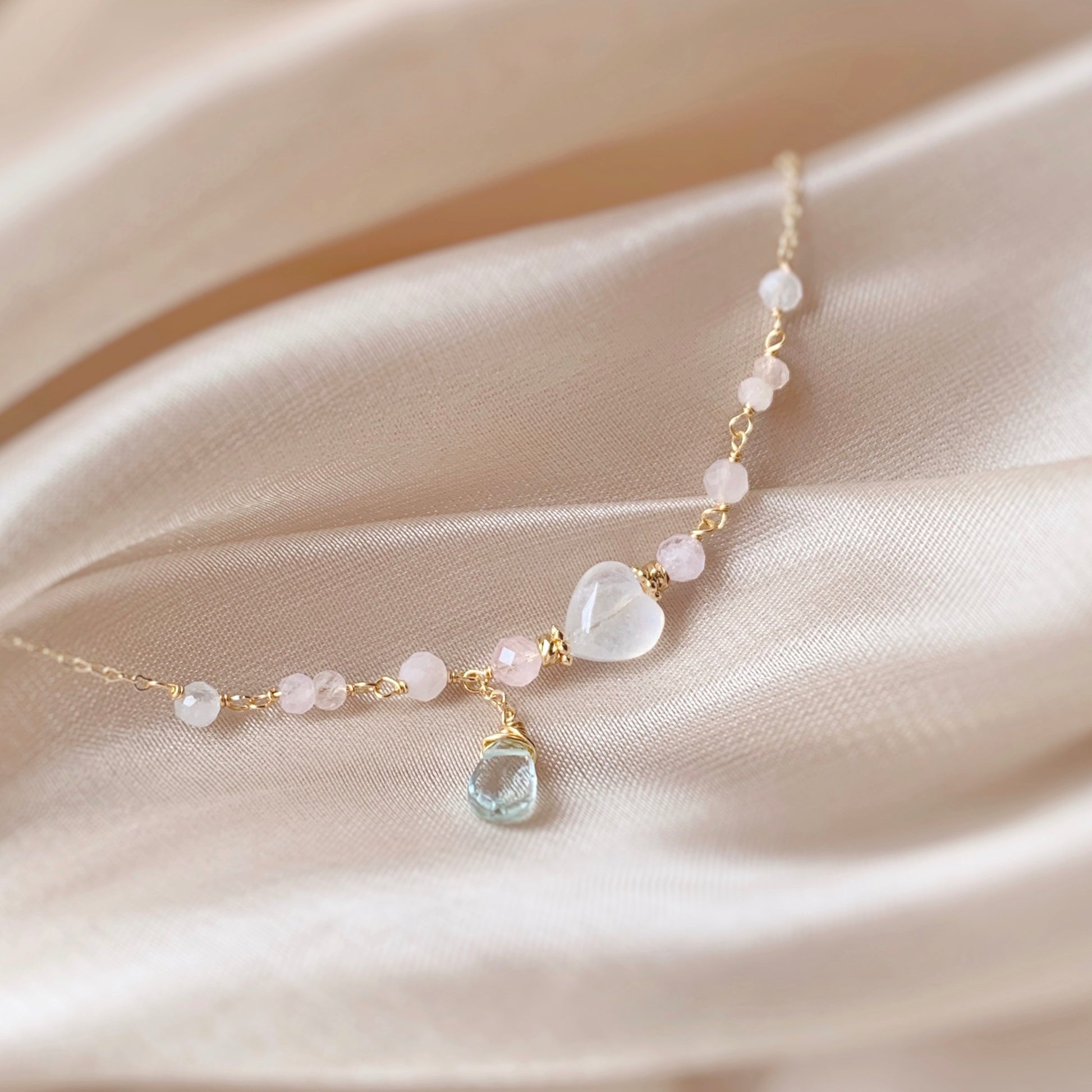 Moonstone. Morganite. Rose Quartz. Aquamarine.