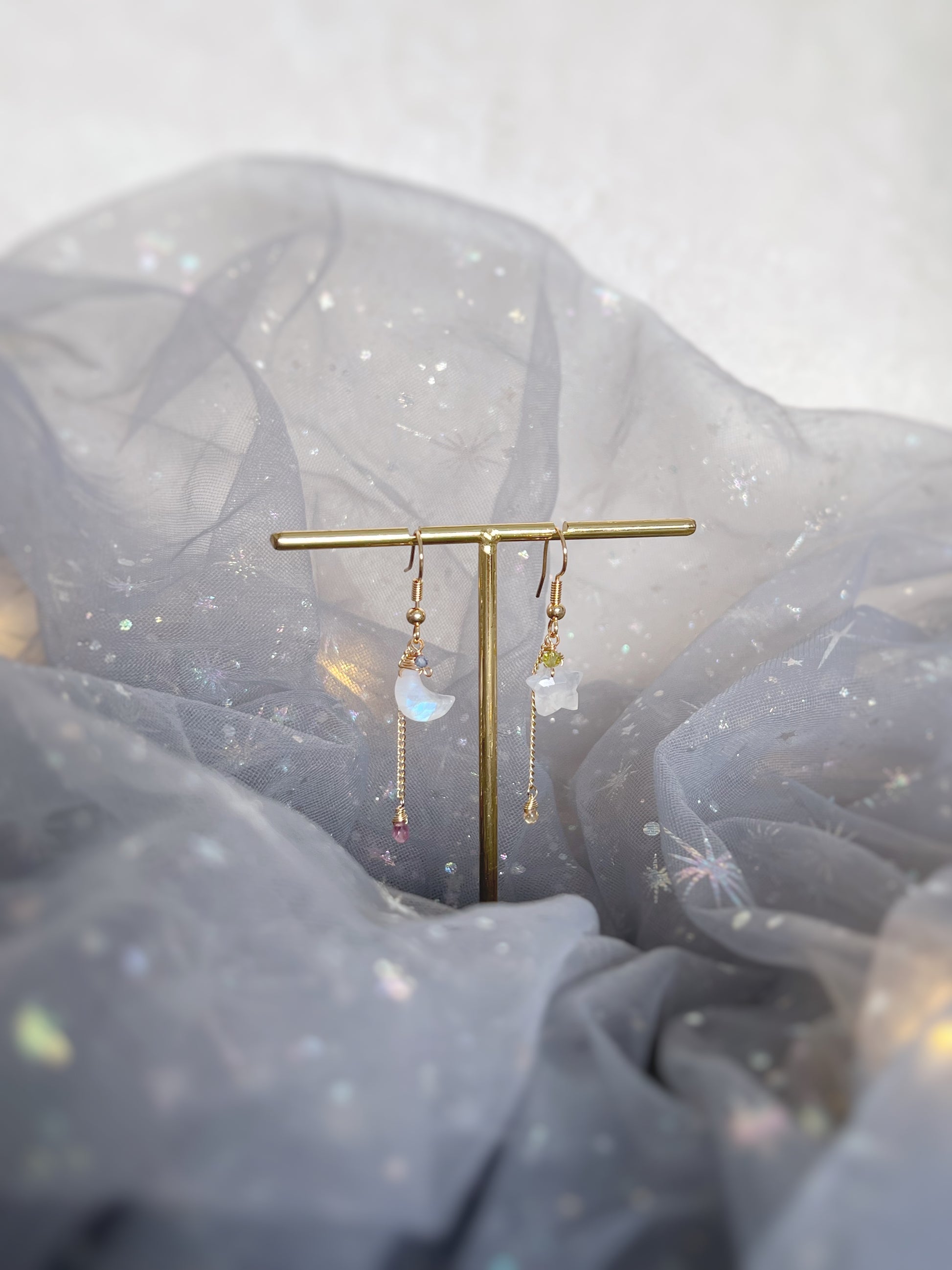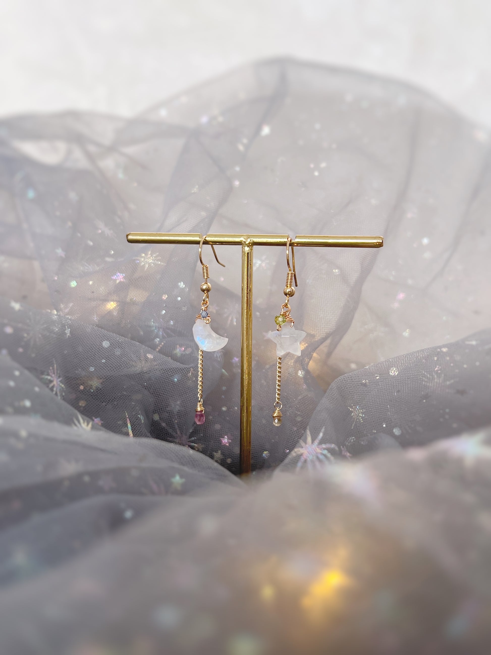 Moonstone Star & Moon, Pink Spinel, Sapphire, Peridot